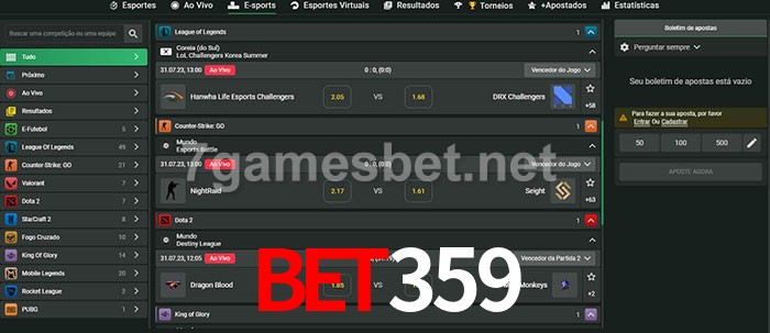A bet359 oferece uma seleção abrangente de opções de apostas em e-sports. Com uma ampla variedade de jogos para escolher, incluindo League of Legends, Dota 2 e CS:GO, há algo para todos os fãs de esportes eletrônicos. Além das apostas pré-jogo, a bet359 também oferece opções de apostas ao vivo para muitos de seus eventos de e-sports. Portanto, seja você um novato em apostas em e-sports ou um profissional experiente, a bet359 bet tem tudo o que você precisa para começar.